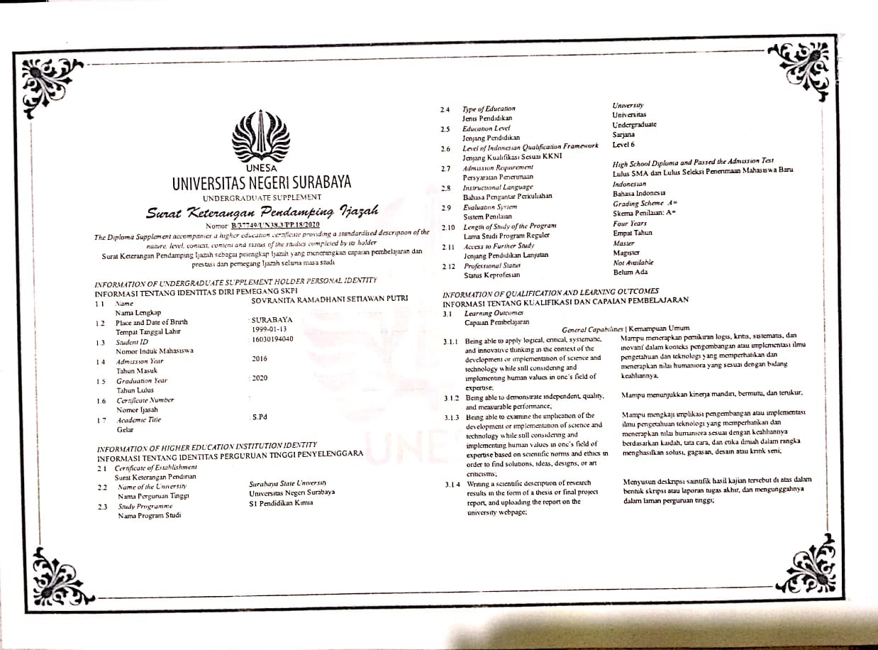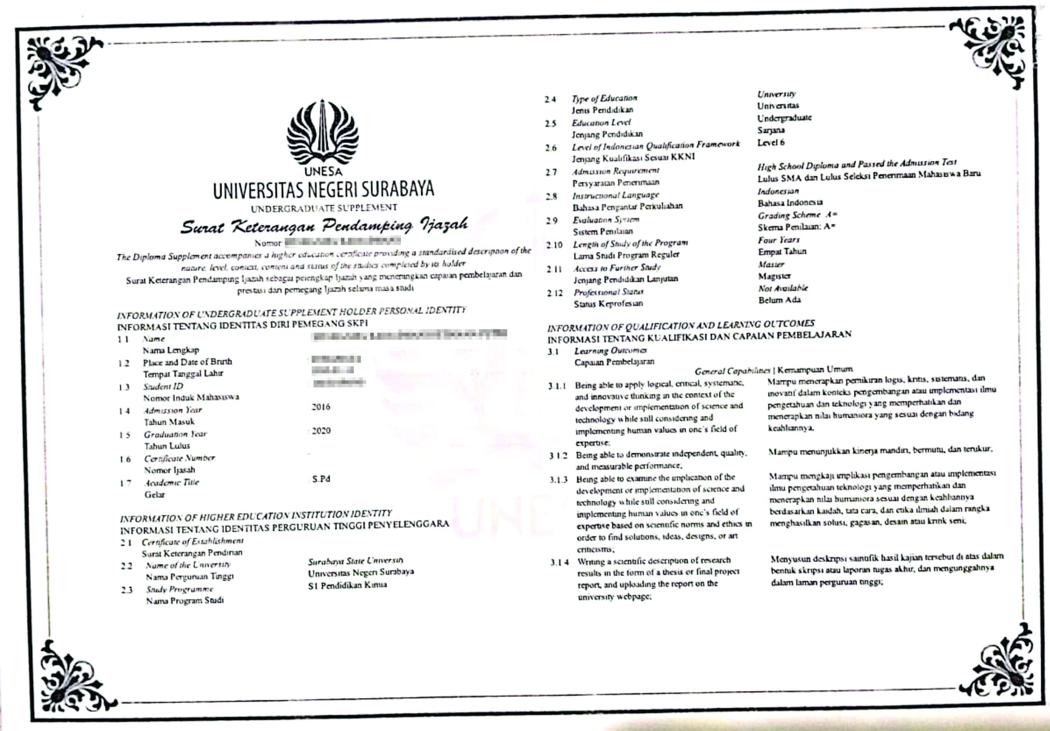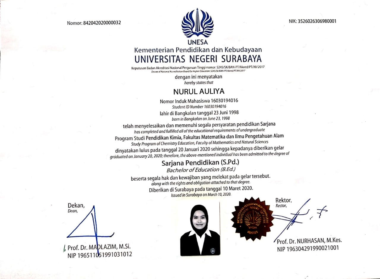 Ijazah dan Sertifikat Pendidik Dosen Prodi Kimia |